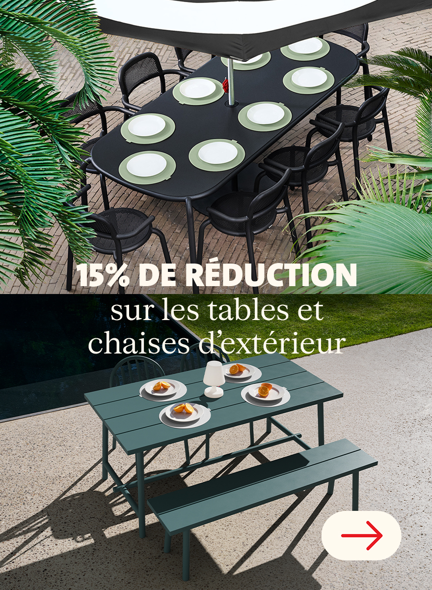 -15% sur une sélection de tables et chaises d’extérieur